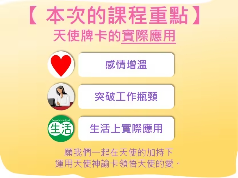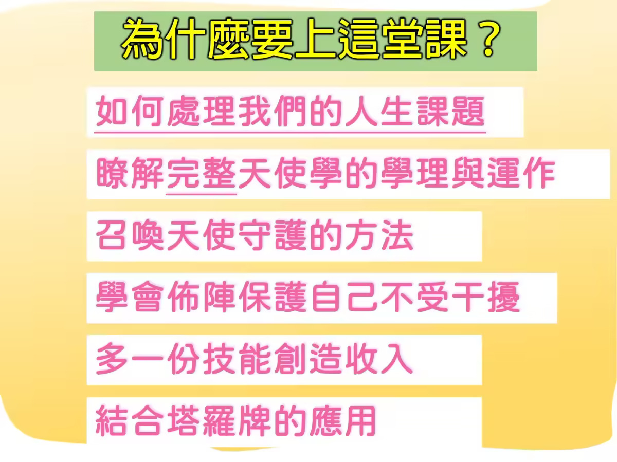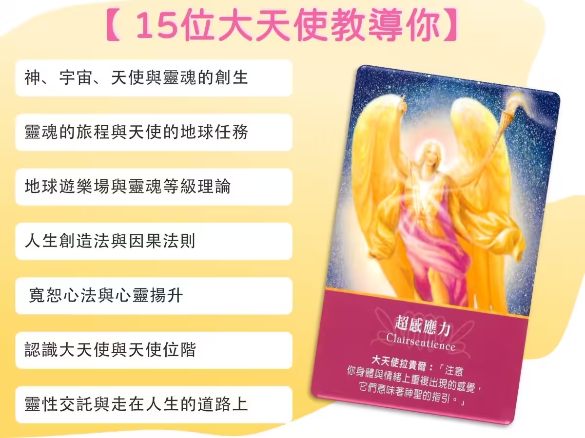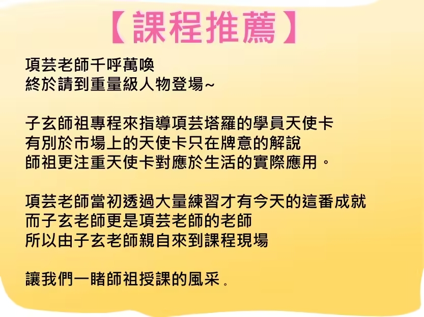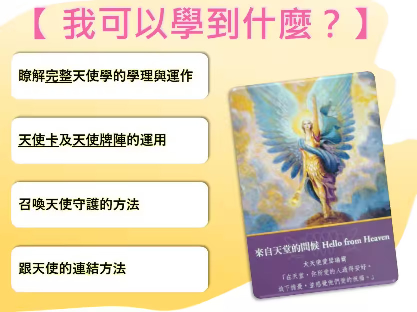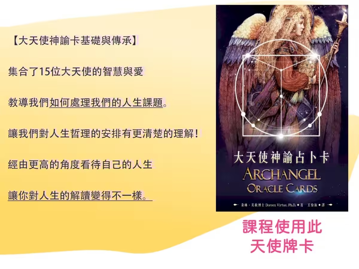 參加【AR大天使學進階班】,探索智慧開端、生命清理與自由回歸!深度學習,體驗神聖轉變!立即報名,踏上天使引領的非凡旅程吧! 子玄的AR大天使學【進階班】 【進階】大天使神諭卡基礎與傳承